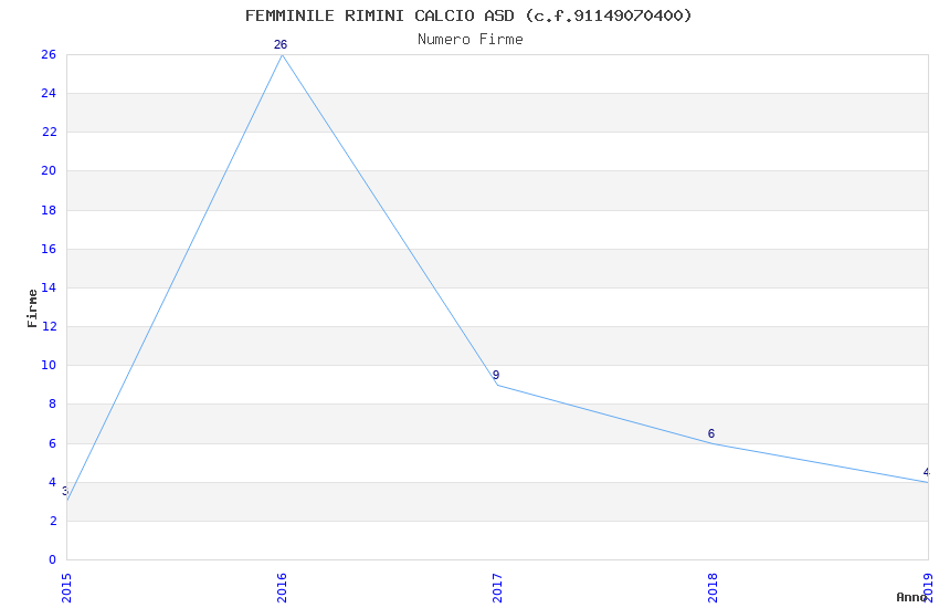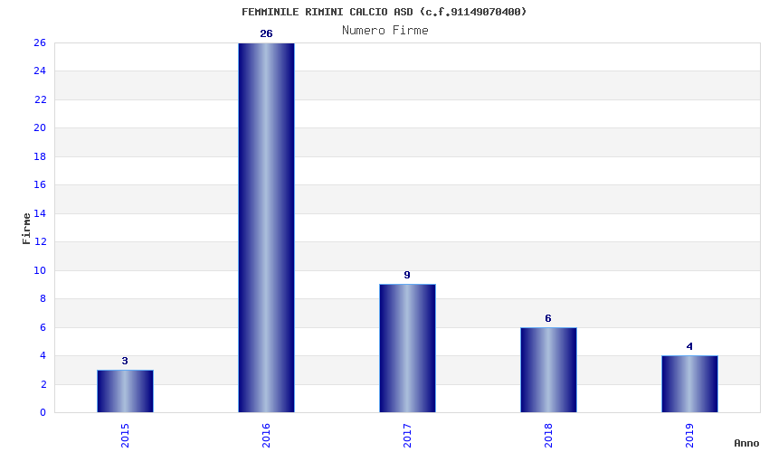 | Anno | Firme | Importi | Media | Naz. | Reg. | Prov. | Comu. |