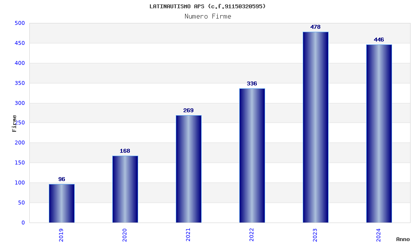 | Anno | Firme | Importi | Media | Naz. | Reg. | Prov. | Comu. |