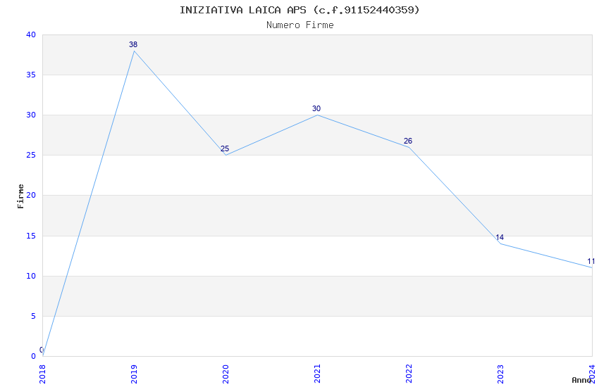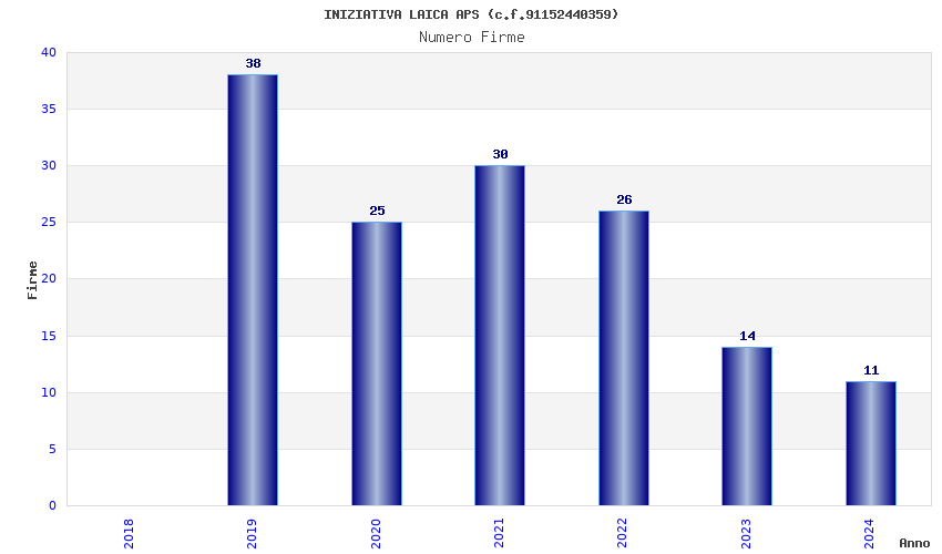 | Anno | Firme | Importi | Media | Naz. | Reg. | Prov. | Comu. |