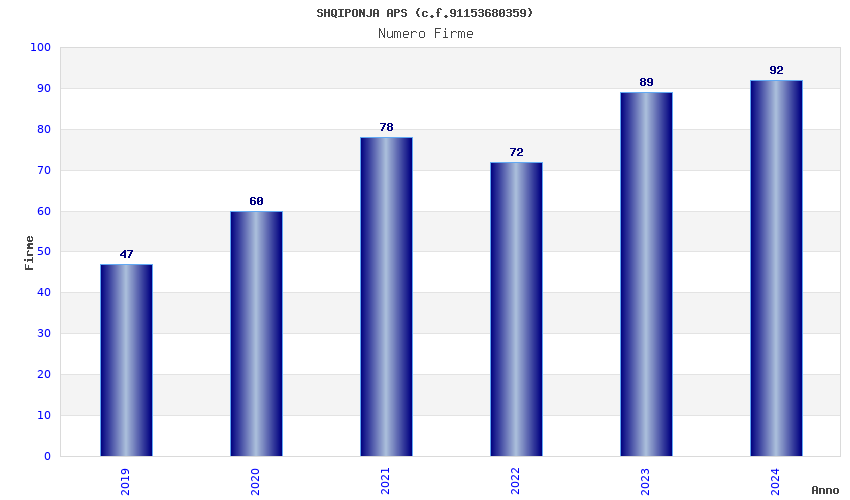 | Anno | Firme | Importi | Media | Naz. | Reg. | Prov. | Comu. |