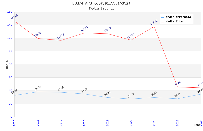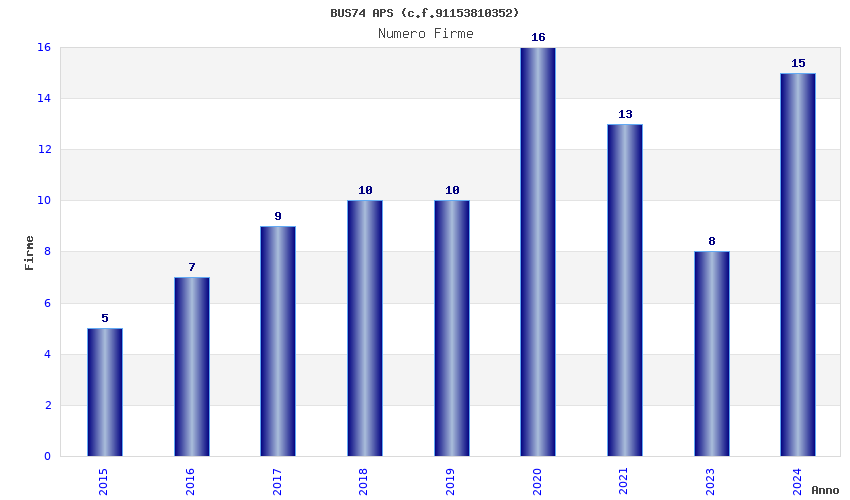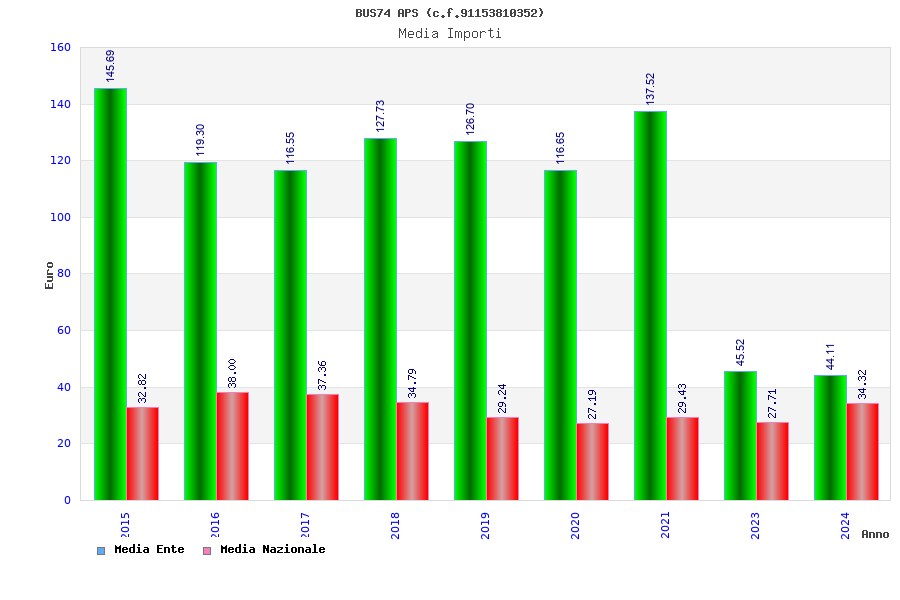 | Anno | Firme | Importi | Media | Naz. | Reg. | Prov. | Comu. |
