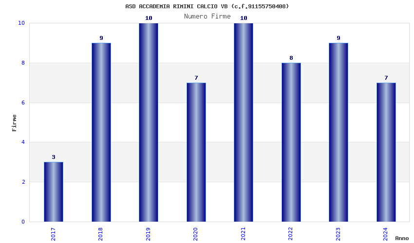 | Anno | Firme | Importi | Media | Naz. | Reg. | Prov. | Comu. |
