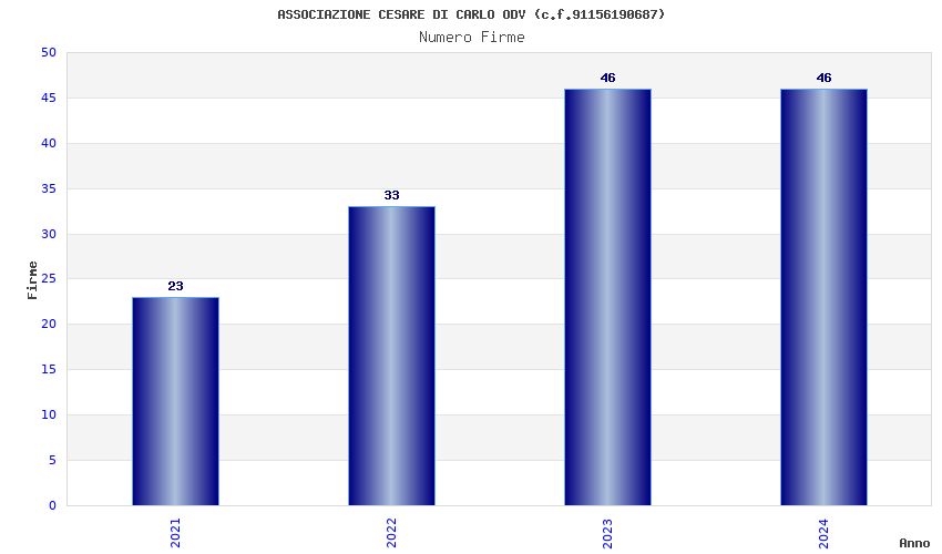 | Anno | Firme | Importi | Media | Naz. | Reg. | Prov. | Comu. |