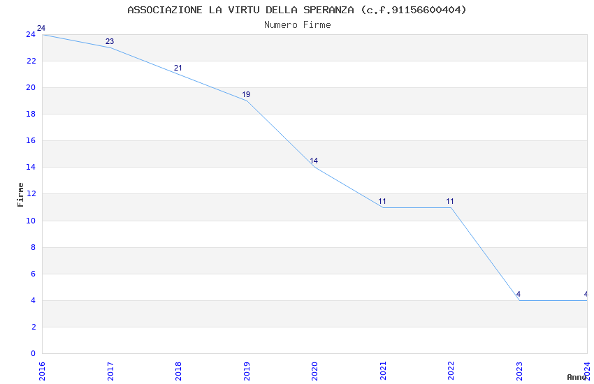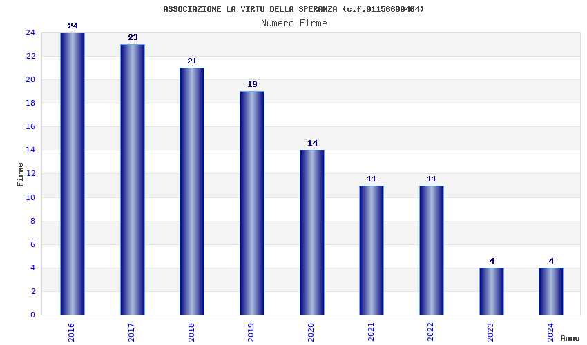 | Anno | Firme | Importi | Media | Naz. | Reg. | Prov. | Comu. |