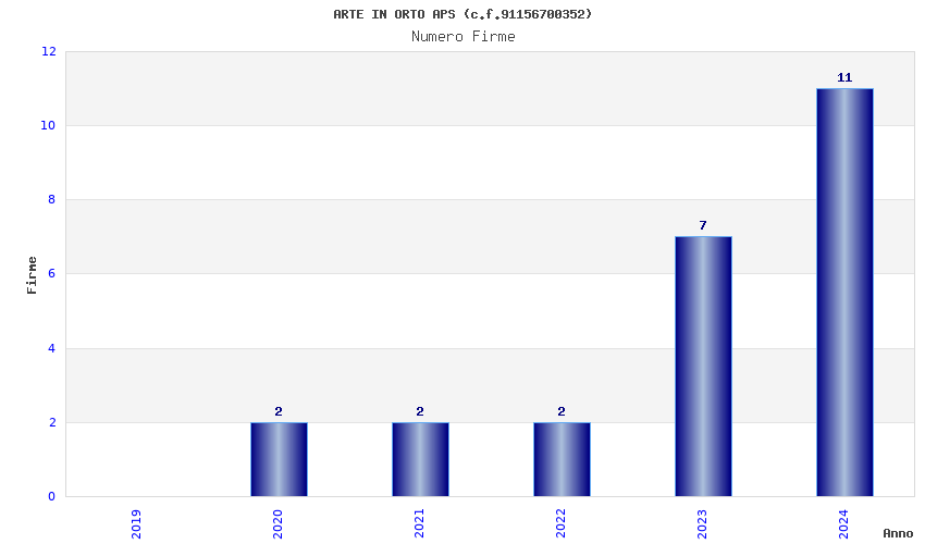 | Anno | Firme | Importi | Media | Naz. | Reg. | Prov. | Comu. |