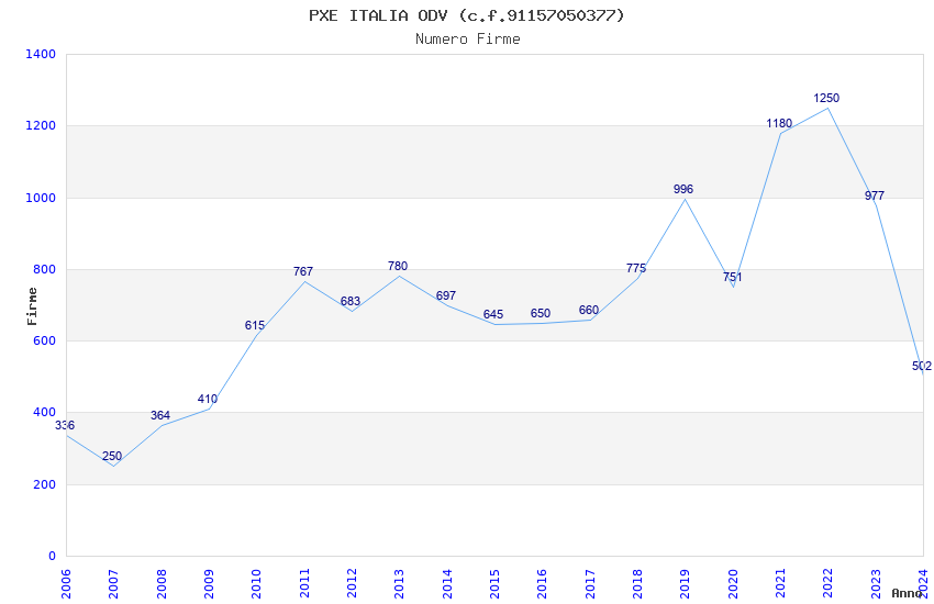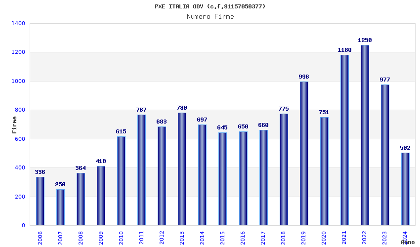 | Anno | Firme | Importi | Media | Naz. | Reg. | Prov. | Comu. |