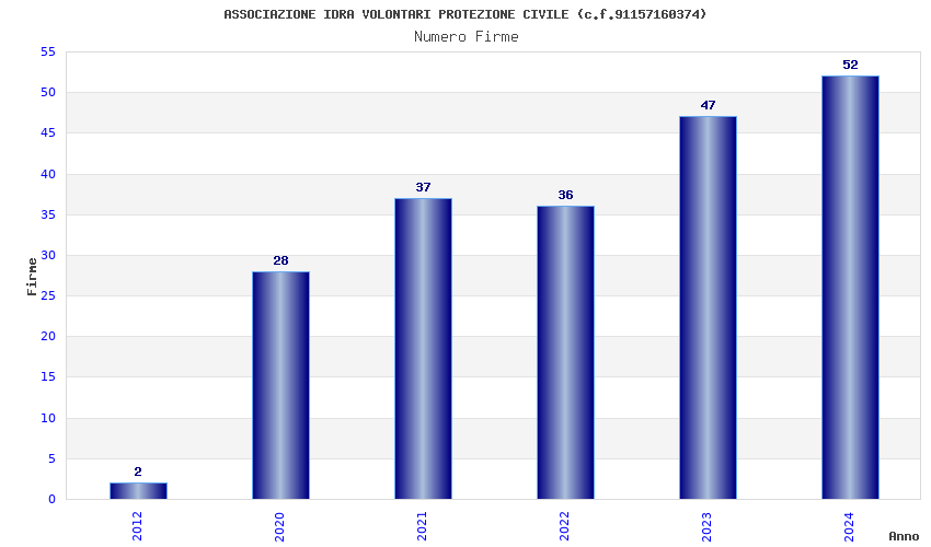 | Anno | Firme | Importi | Media | Naz. | Reg. | Prov. | Comu. |
