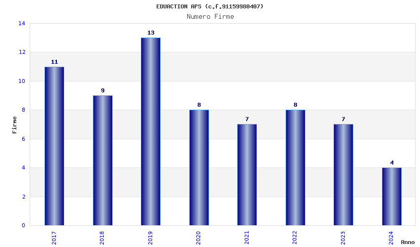 | Anno | Firme | Importi | Media | Naz. | Reg. | Prov. | Comu. |