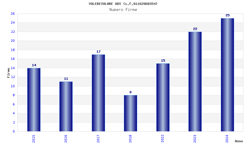 | Anno | Firme | Importi | Media | Naz. | Reg. | Prov. | Comu. |