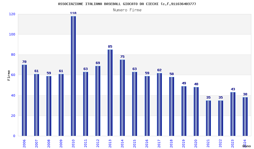 | Anno | Firme | Importi | Media | Naz. | Reg. | Prov. | Comu. |