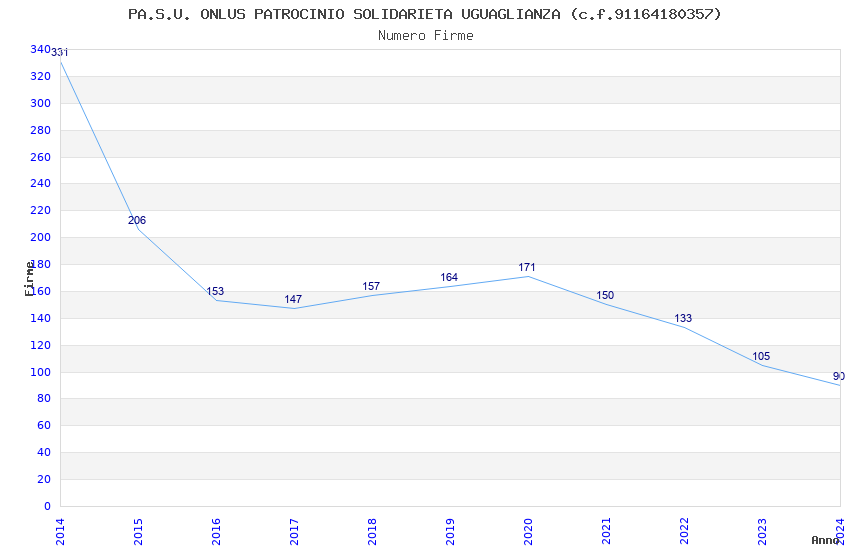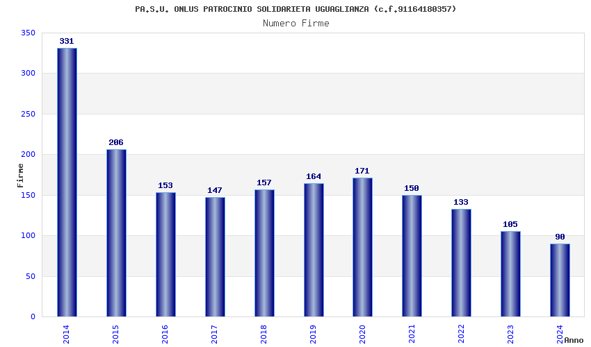 | Anno | Firme | Importi | Media | Naz. | Reg. | Prov. | Comu. |