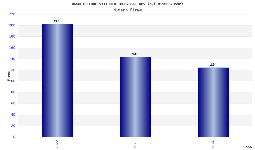 | Anno | Firme | Importi | Media | Naz. | Reg. | Prov. | Comu. |