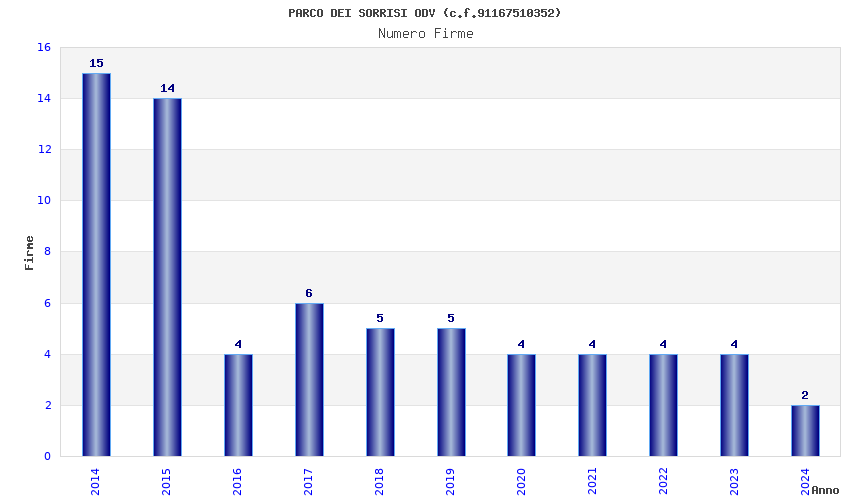 | Anno | Firme | Importi | Media | Naz. | Reg. | Prov. | Comu. |