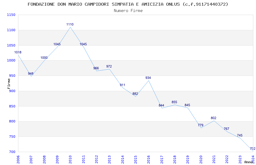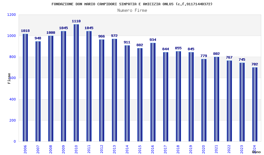 | Anno | Firme | Importi | Media | Naz. | Reg. | Prov. | Comu. |