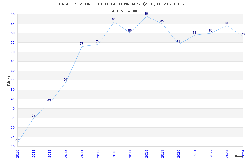 | 2018 | 89 | 6.401,75 | 71,93 | 8.516 | 760 | 204 | 125 |