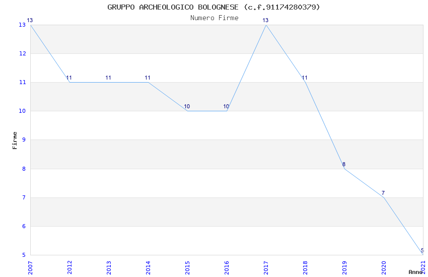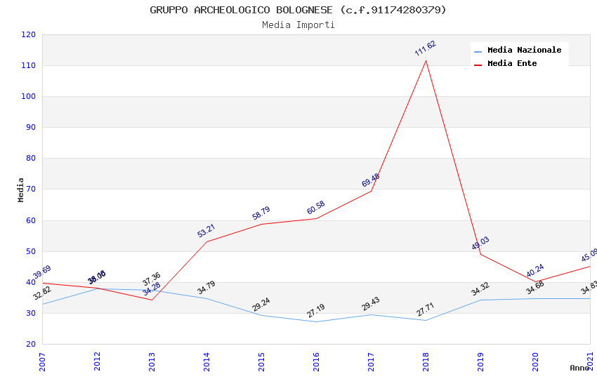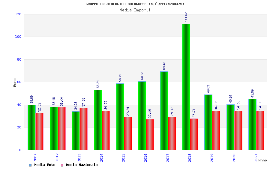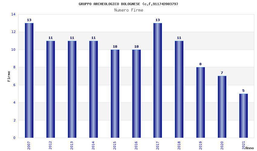 | Anno | Firme | Importi | Media | Naz. | Reg. | Prov. | Comu. |