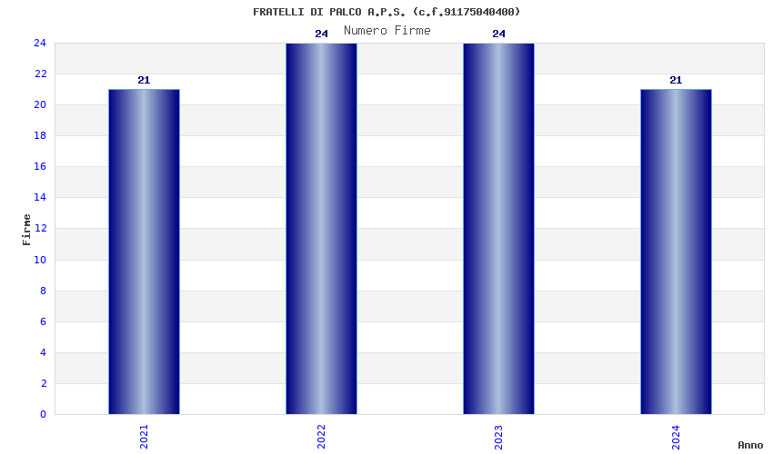 | 2024 | 21 | 300,50 | 14,31 | 59.614 | 5.212 | 321 | 14 |