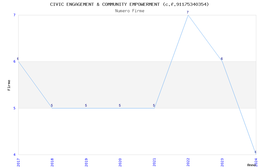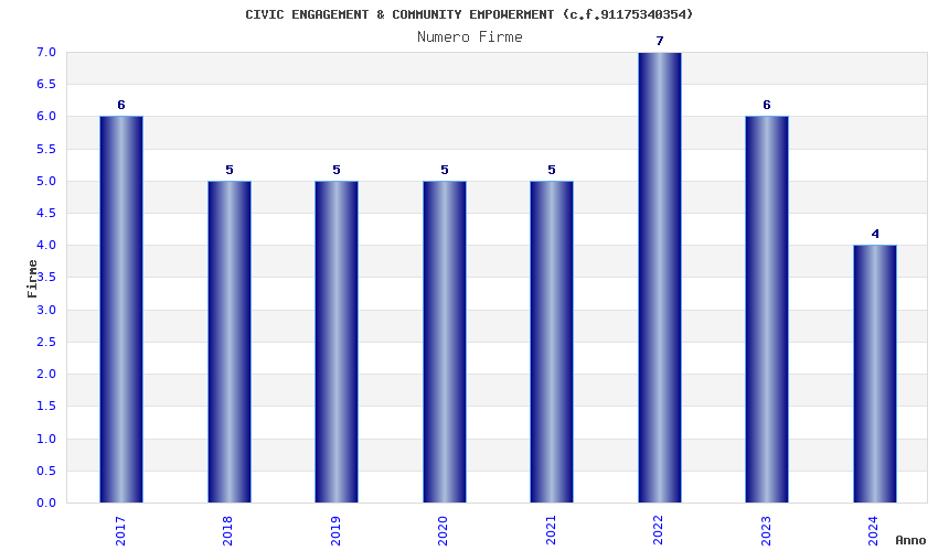 | Anno | Firme | Importi | Media | Naz. | Reg. | Prov. | Comu. |