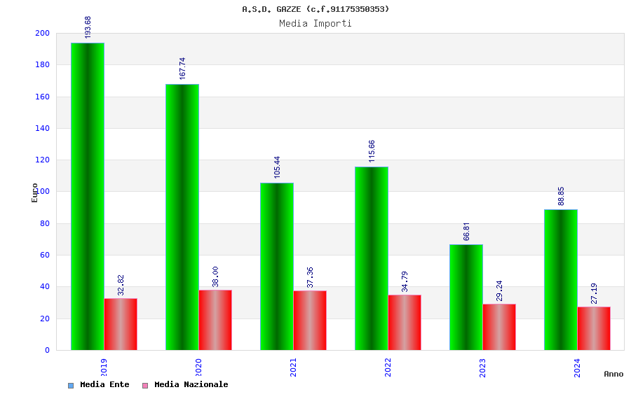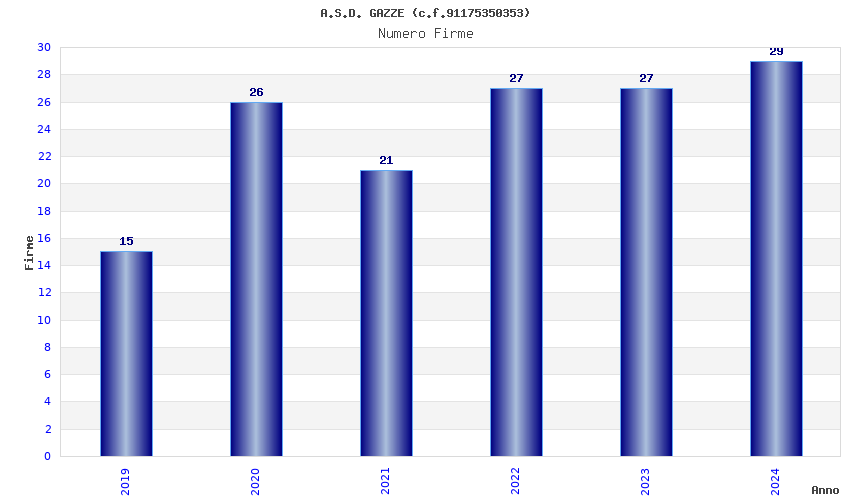 | Anno | Firme | Importi | Media | Naz. | Reg. | Prov. | Comu. |