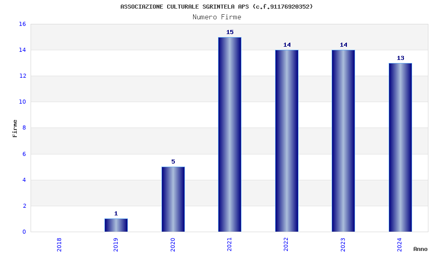 | Anno | Firme | Importi | Media | Naz. | Reg. | Prov. | Comu. |