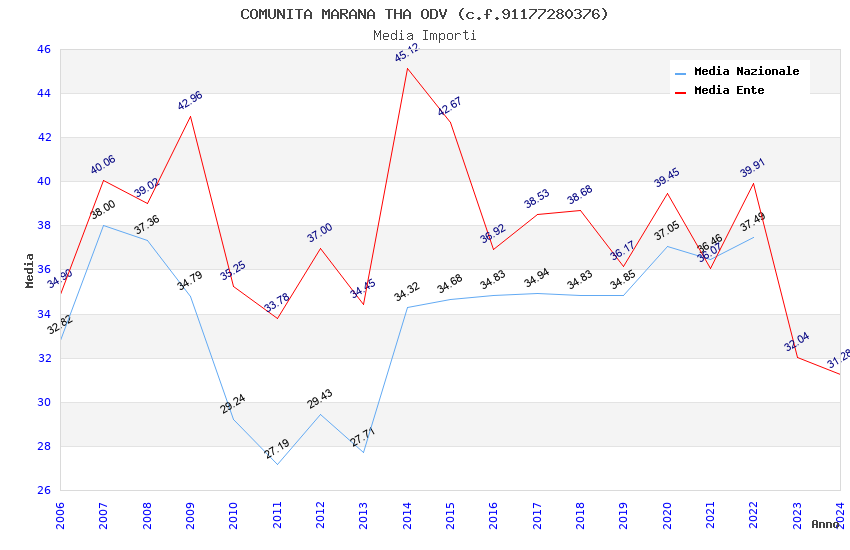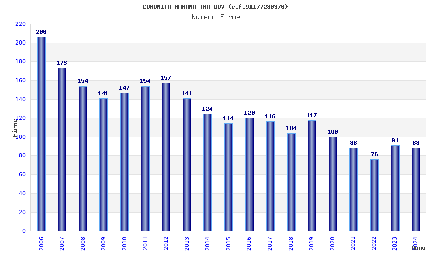| Anno | Firme | Importi | Media | Naz. | Reg. | Prov. | Comu. |