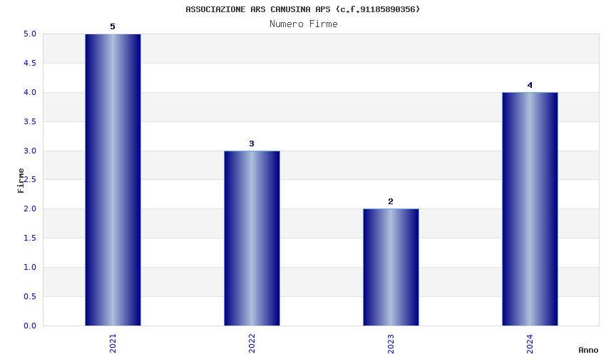 | Anno | Firme | Importi | Media | Naz. | Reg. | Prov. | Comu. |