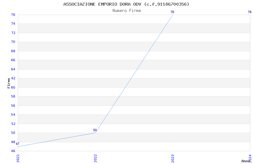 | 2023 | 76 | 3.675,27 | 48,36 | 14.554 | 1.263 | 164 | 70 |