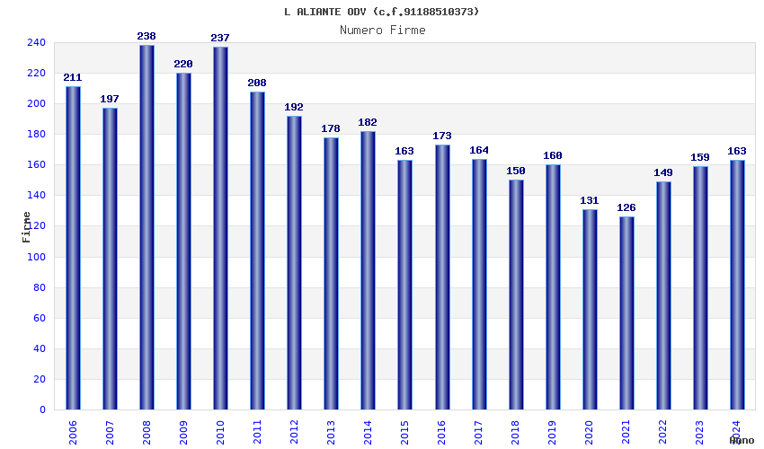 | Anno | Firme | Importi | Media | Naz. | Reg. | Prov. | Comu. |