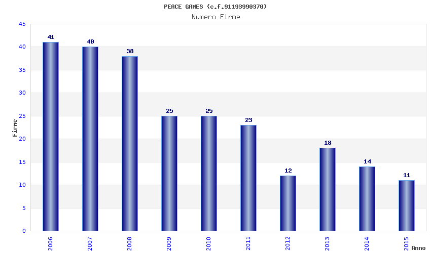 | Anno | Firme | Importi | Media | Naz. | Reg. | Prov. | Comu. |