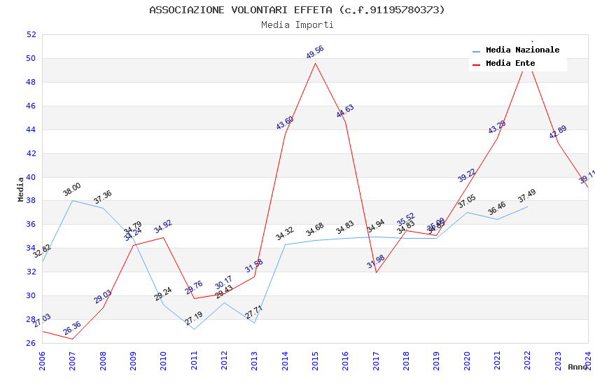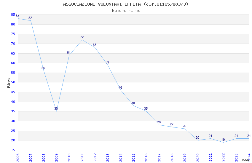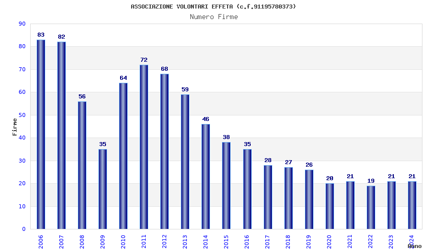 | Anno | Firme | Importi | Media | Naz. | Reg. | Prov. | Comu. |