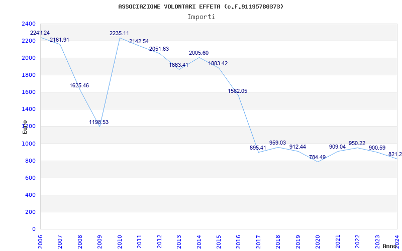 | totale | 821 | 28.105,35 | 34,23 |