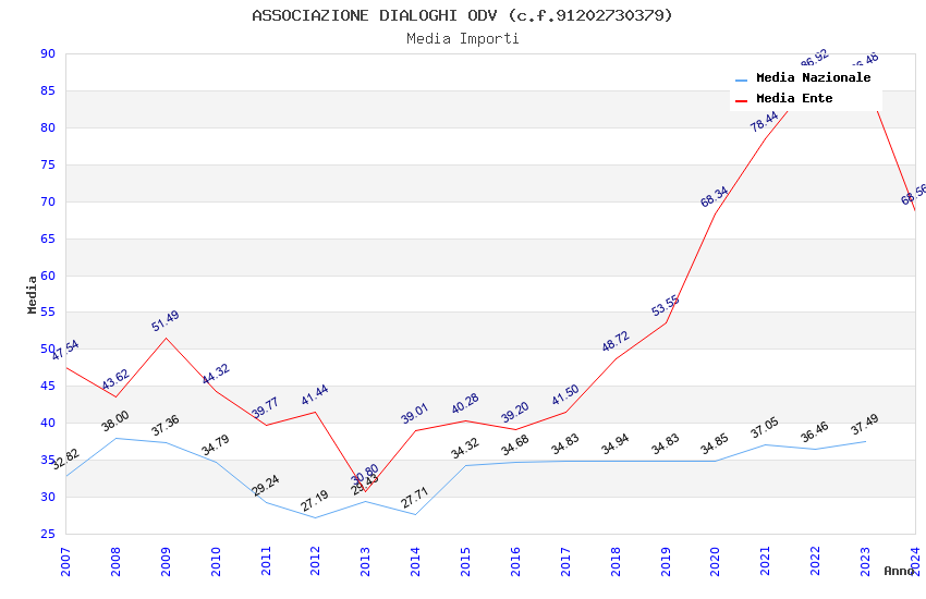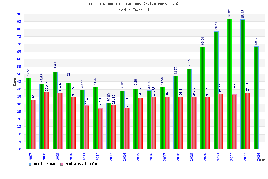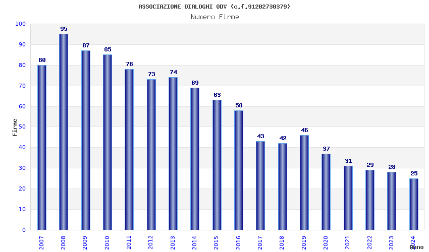 | Anno | Firme | Importi | Media | Naz. | Reg. | Prov. | Comu. |