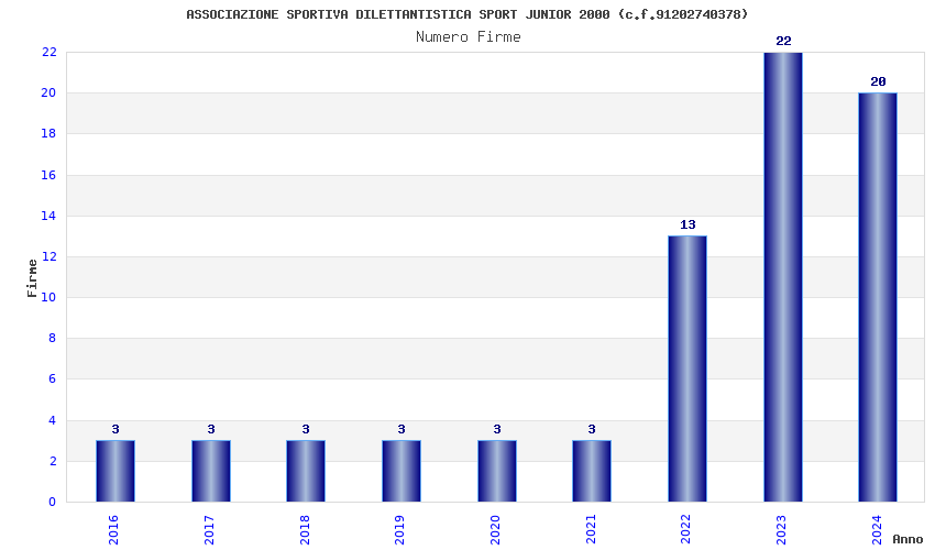 | Anno | Firme | Importi | Media | Naz. | Reg. | Prov. | Comu. |