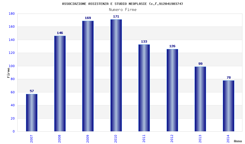 | Anno | Firme | Importi | Media | Naz. | Reg. | Prov. | Comu. |