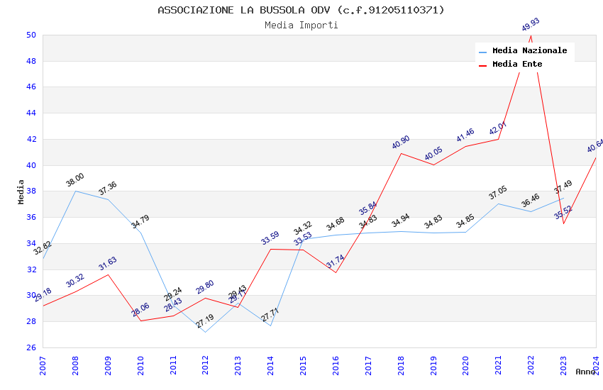 | Anno | Firme | Importi | Media | Naz. | Reg. | Prov. | Comu. |