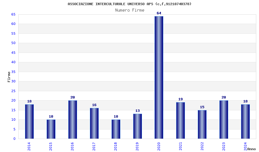 | Anno | Firme | Importi | Media | Naz. | Reg. | Prov. | Comu. |