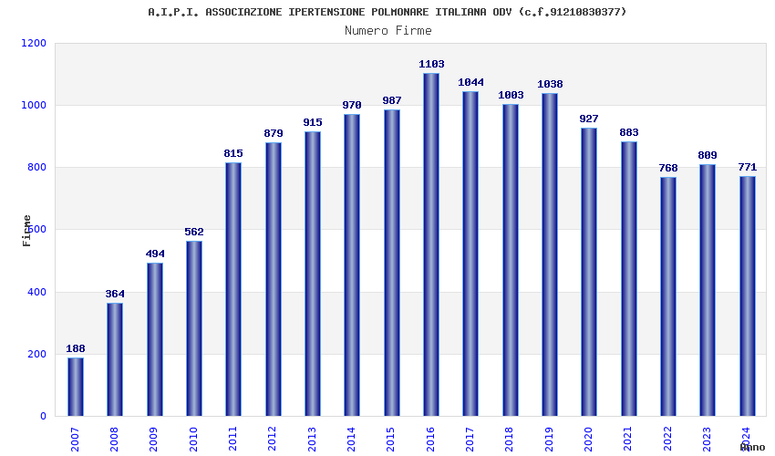 | Anno | Firme | Importi | Media | Naz. | Reg. | Prov. | Comu. |
