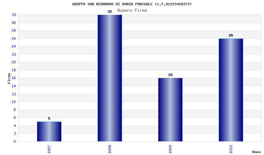 | Anno | Firme | Importi | Media | Naz. | Reg. | Prov. | Comu. |