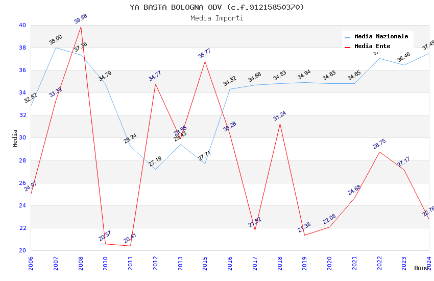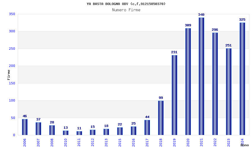 | Anno | Firme | Importi | Media | Naz. | Reg. | Prov. | Comu. |