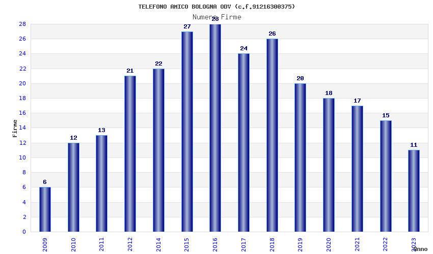 | Anno | Firme | Importi | Media | Naz. | Reg. | Prov. | Comu. |