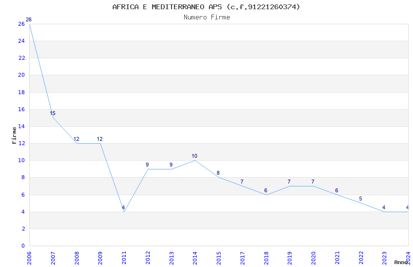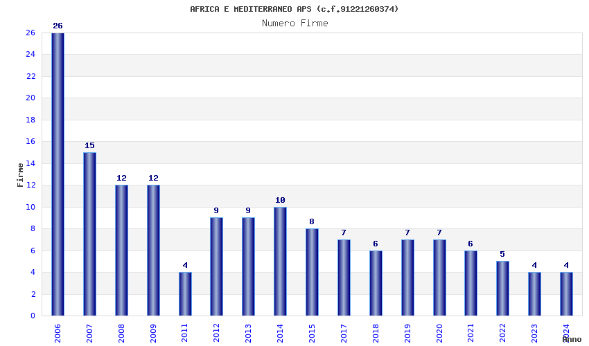 | Anno | Firme | Importi | Media | Naz. | Reg. | Prov. | Comu. |