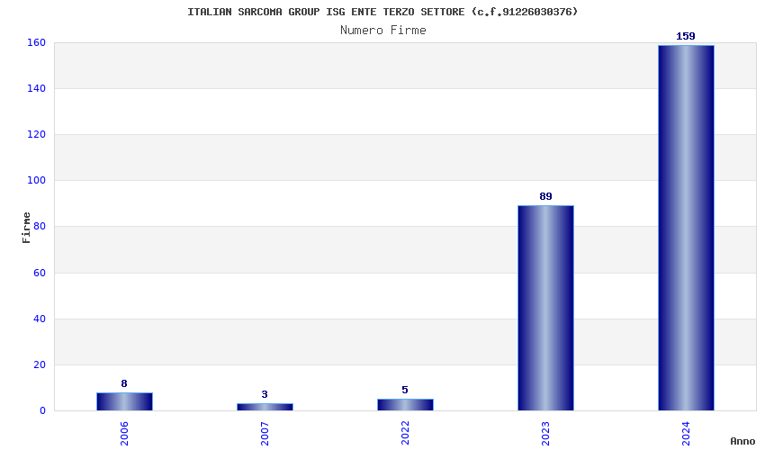| Anno | Firme | Importi | Media | Naz. | Reg. | Prov. | Comu. |