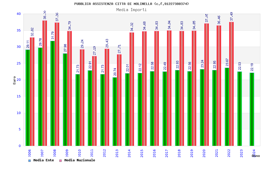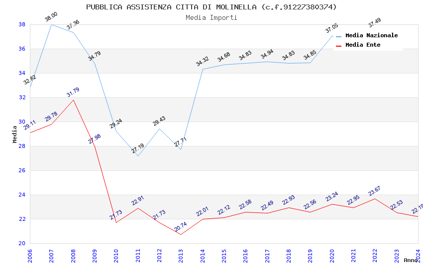 | Anno | Firme | Importi | Media | Naz. | Reg. | Prov. | Comu. |
