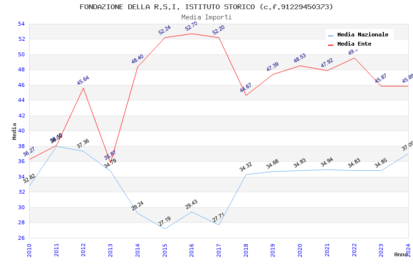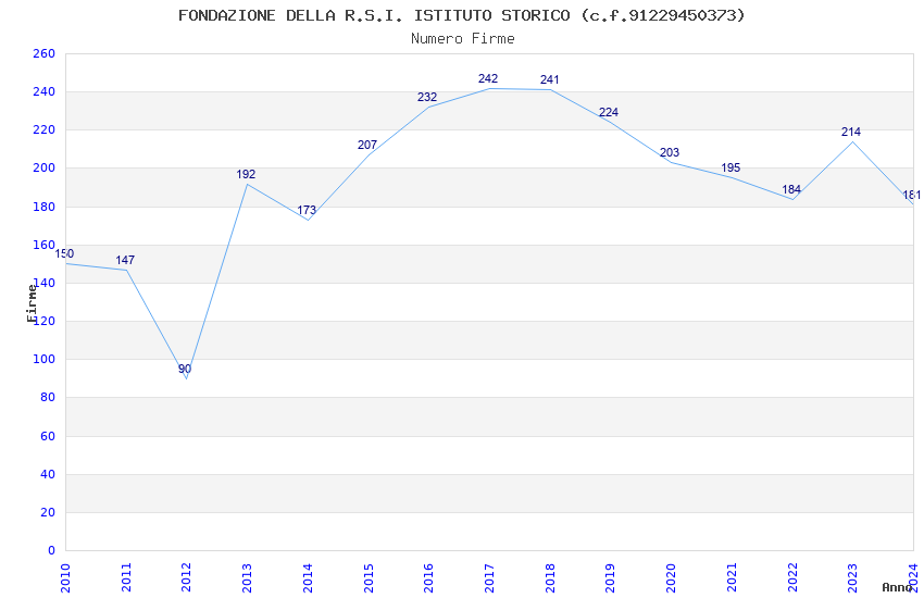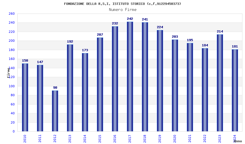 | Anno | Firme | Importi | Media | Naz. | Reg. | Prov. | Comu. |