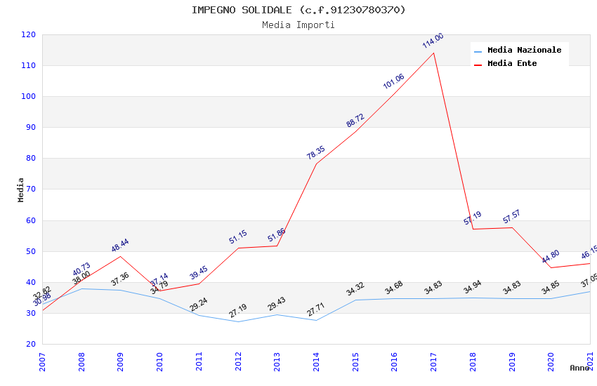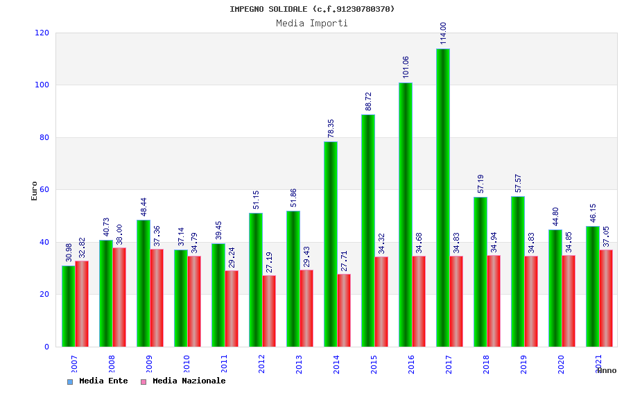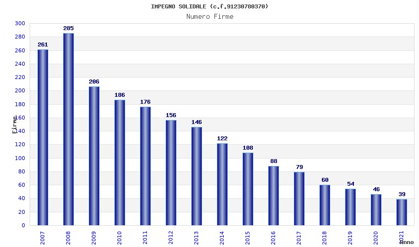 | Anno | Firme | Importi | Media | Naz. | Reg. | Prov. | Comu. |