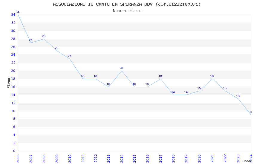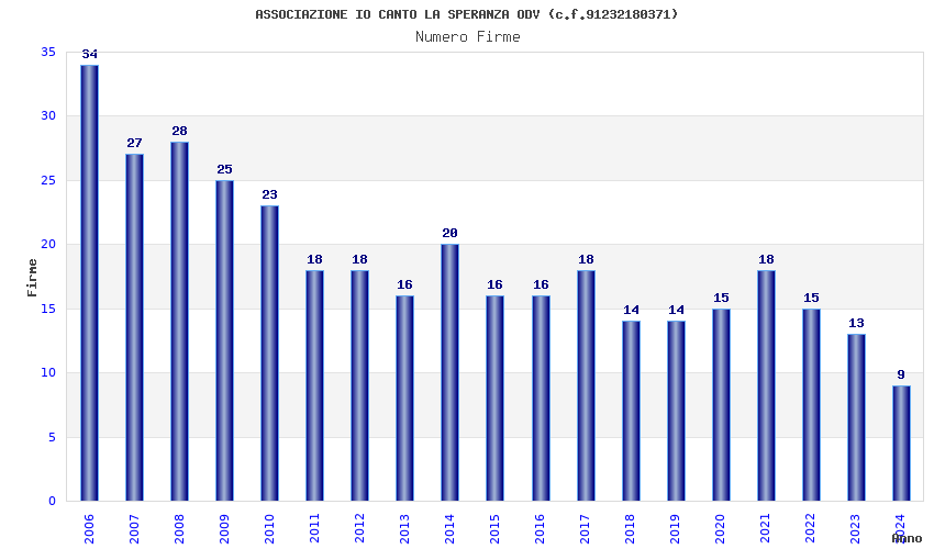 | Anno | Firme | Importi | Media | Naz. | Reg. | Prov. | Comu. |