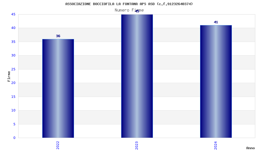 | Anno | Firme | Importi | Media | Naz. | Reg. | Prov. | Comu. |