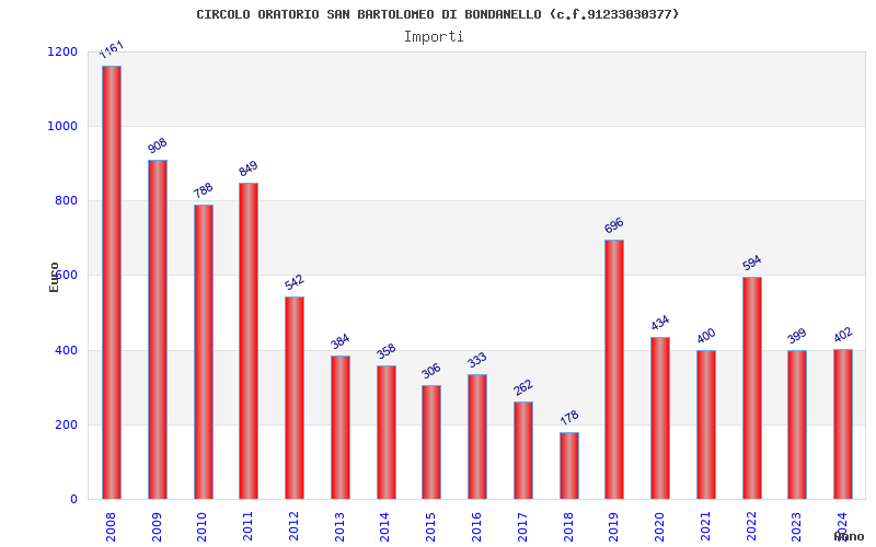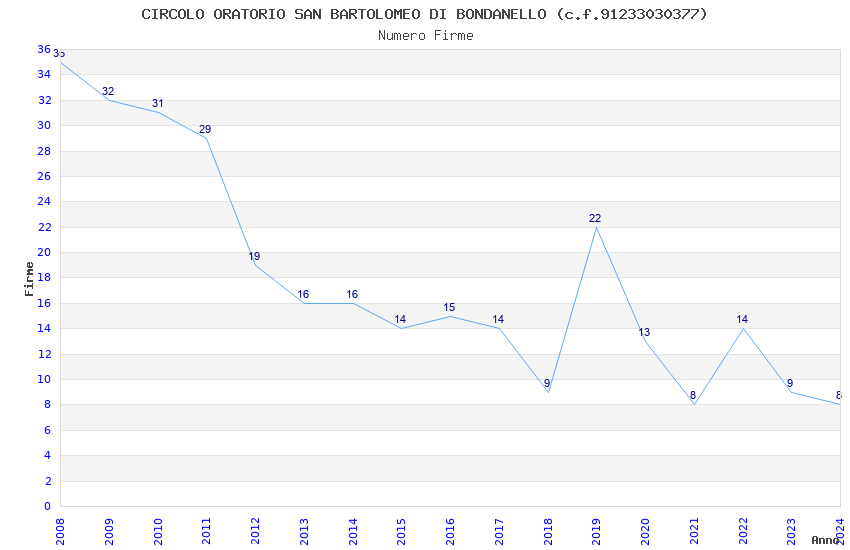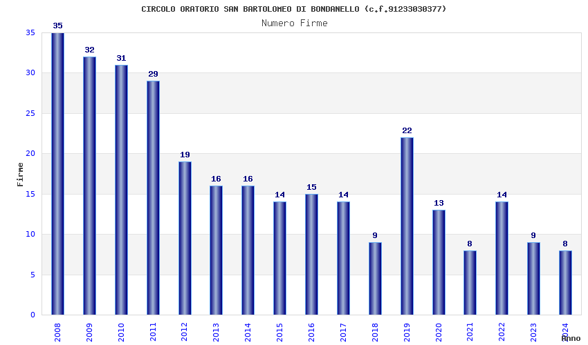 | Anno | Firme | Importi | Media | Naz. | Reg. | Prov. | Comu. |
