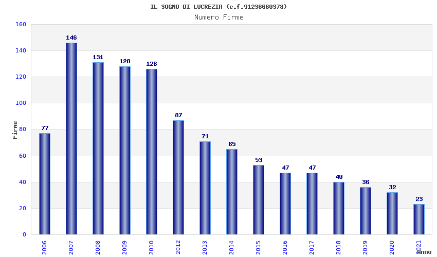 | Anno | Firme | Importi | Media | Naz. | Reg. | Prov. | Comu. |