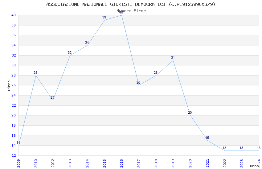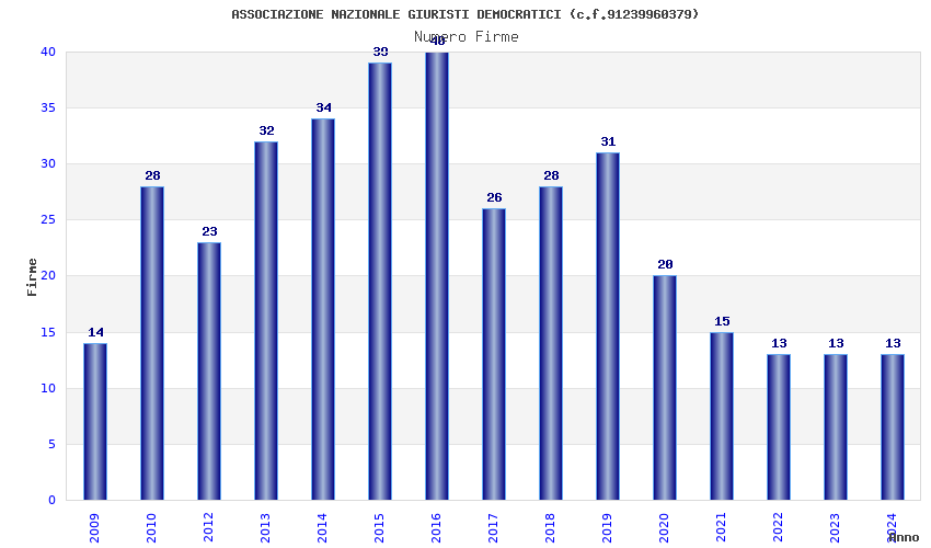 | 2016 | 40 | 4.013,56 | 100,34 | 13.456 | 1.275 | 298 | 147 |